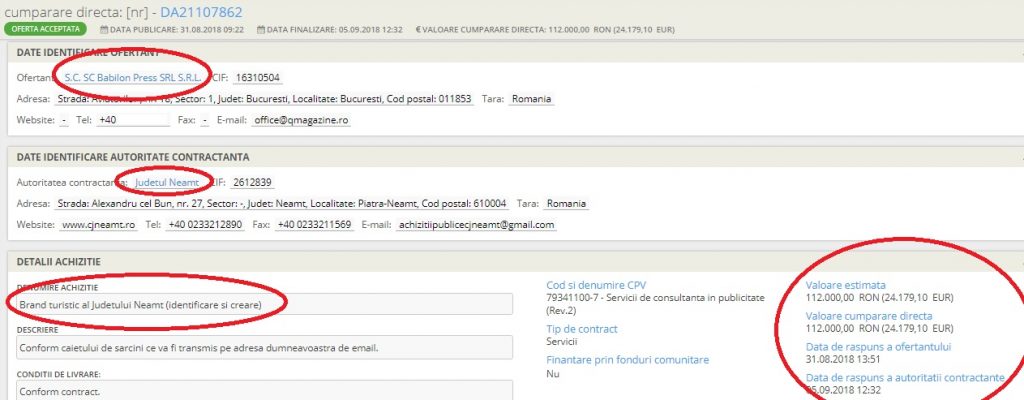 Interesant este că Babilon Press SRL a prins contractul cu CJ-ul condus de Ionel Arsene, prietenul lui Liviu Dragnea, exact în perioada în care Gabriel Firea îl ataca pe președintele PSD la nivel central. Pe 6 septembrie, Q Magazine publica, sub semnătura Norei Noapte, articolul „Clanul Pandele gazează PSD. Dragnea nu cedează… Marea Neagră” al cărui conținut nu-l vom comenta. Mai ales că este ușor de dedus ce a încercat să explice autorul, respectiv că Firea și Pandele ar fi vrut să-l dea jos pe Dragnea, pentru a apăra interesele oculților din afacerea cu gaze din Marea Neagră. Cum spuneam, articolul a fost publicat pe 6 septembrie, la fix o zi după ce Babilon Press SRL, firma care editează revista, prinsese un contract pe bani buni cu CJ-ul condus de Arsene al lui Dragnea. O coincidență interesantă, trebuie să recunoaștem. La fel de ciudat este că reprezentanții Consiliului Județean Neamț mediatizează intens un sondaj de opinie în care întrebările 2 și 3 au legătură fix cu ceea ce trebuie să facă firma Babilon Press SRL pentru banii pe care îi ia de la bugetul județului, și anume să identifice și să creeze brandul turistic al județului Neamț.