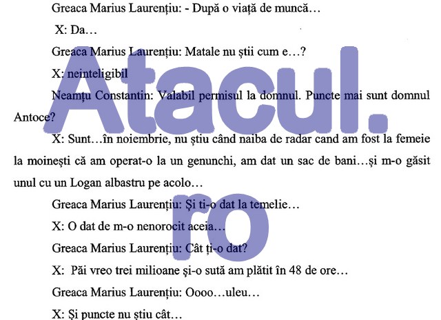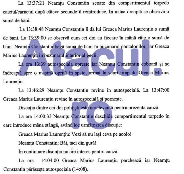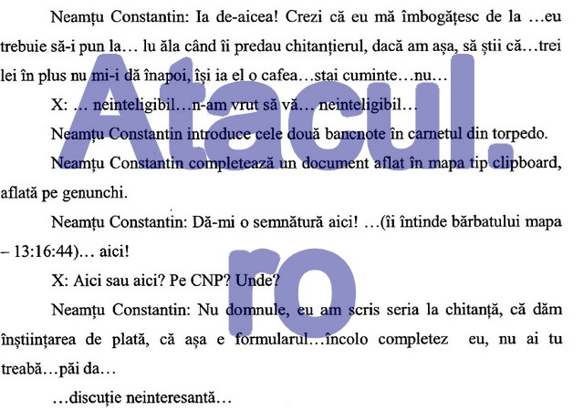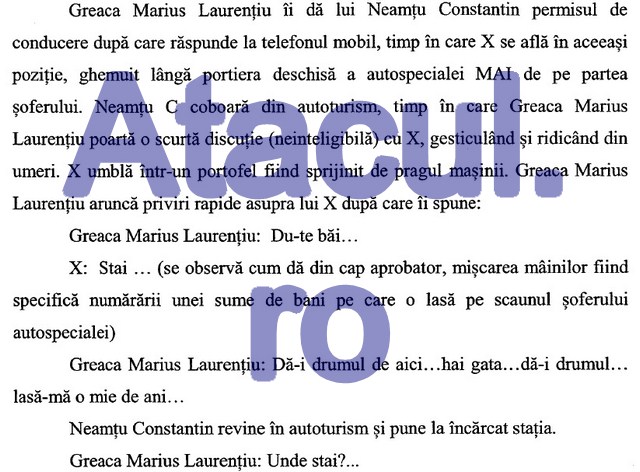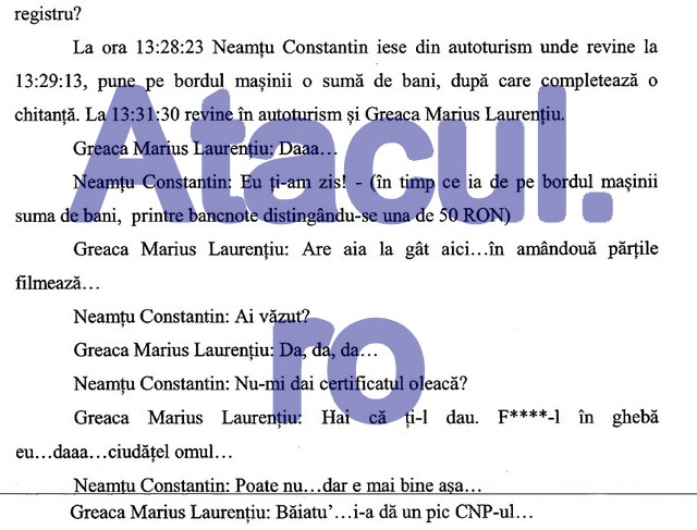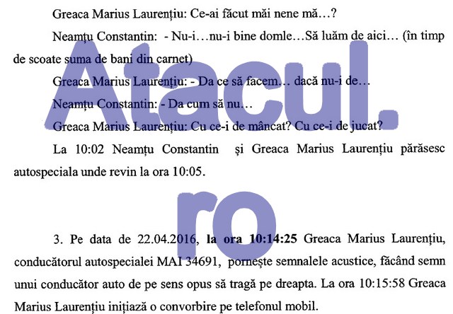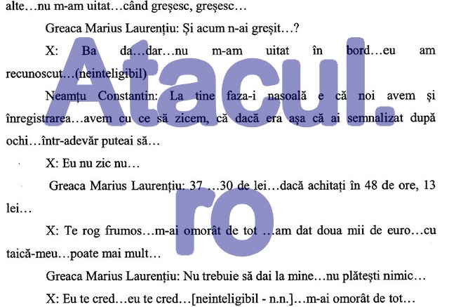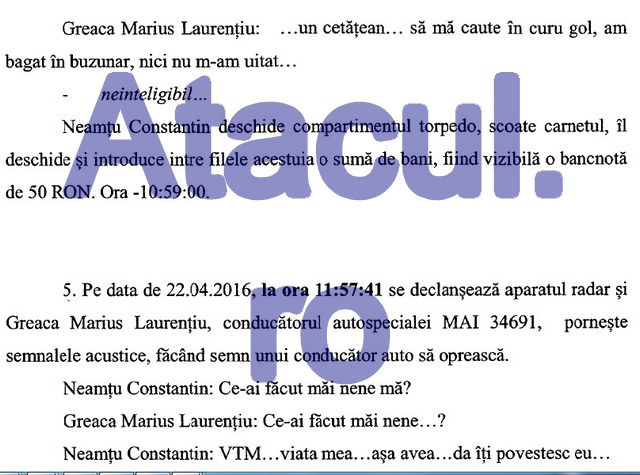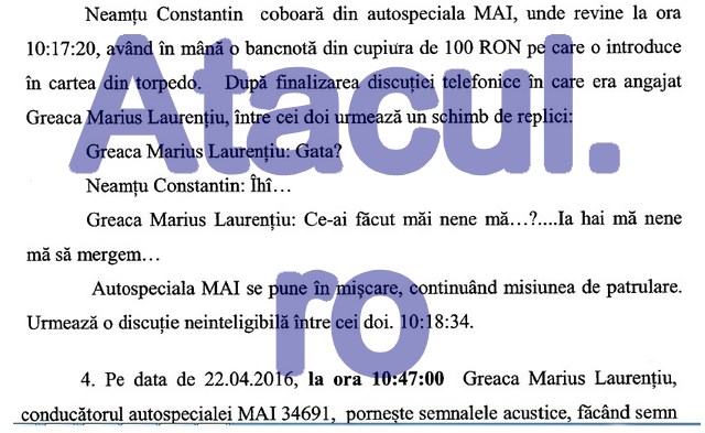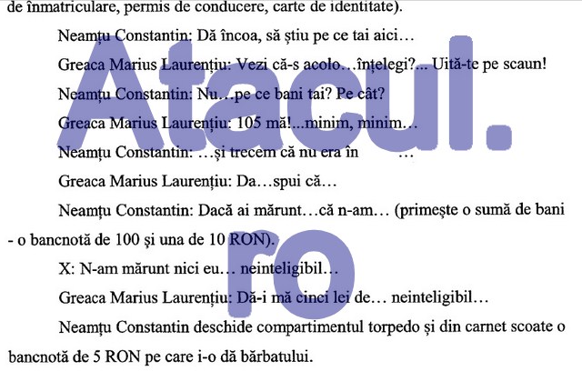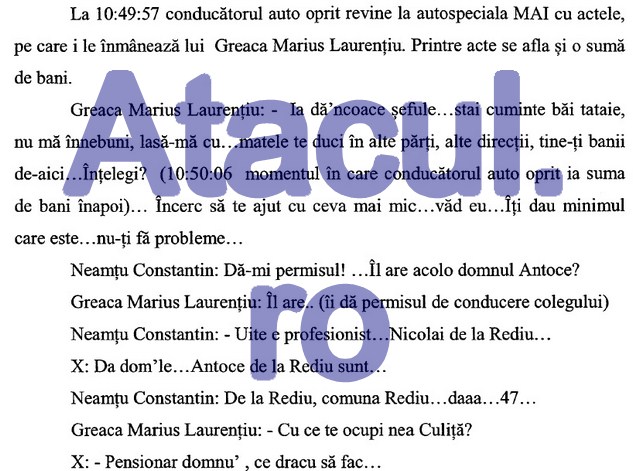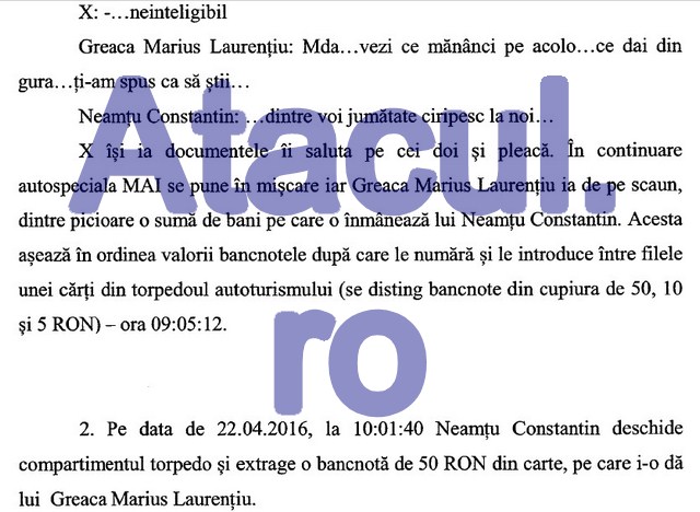 Mai jos sunt interceptările realizate în acea zi, când Greaca și Neamțu au plecat acasă, fiecare, cu câteva sute de lei. Din șpăgi.