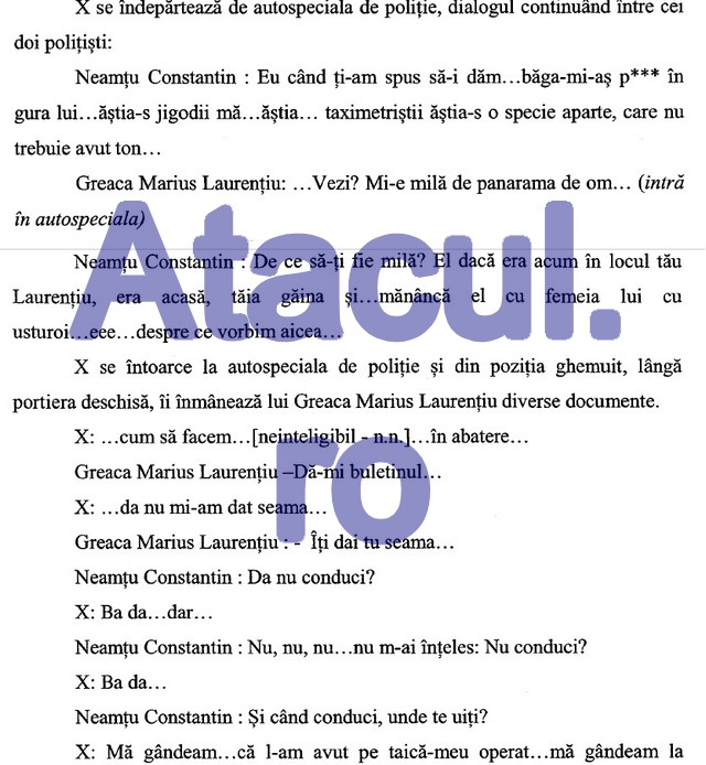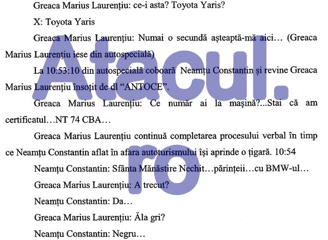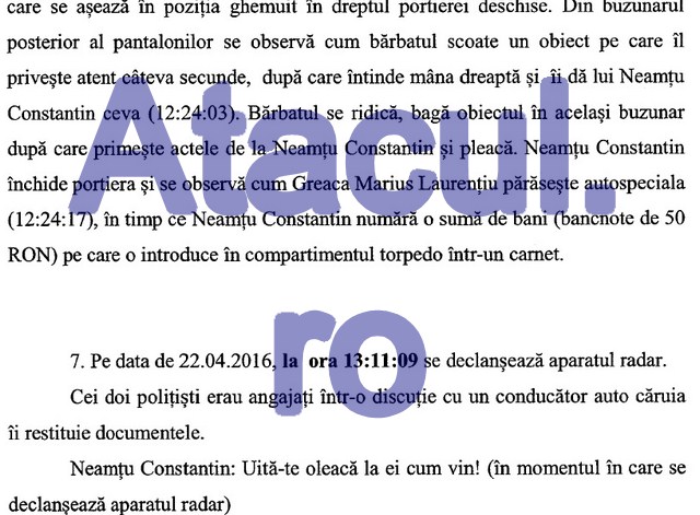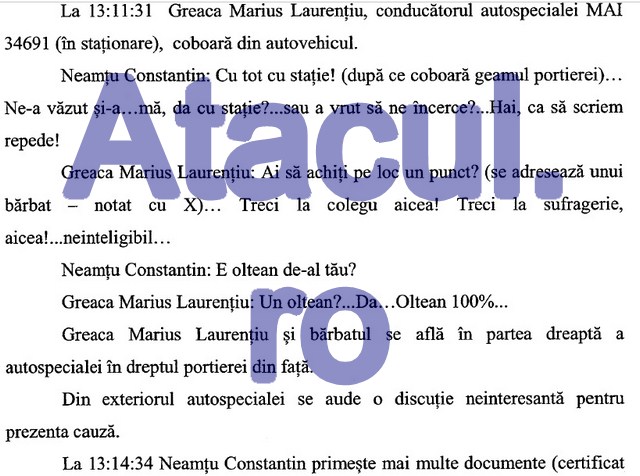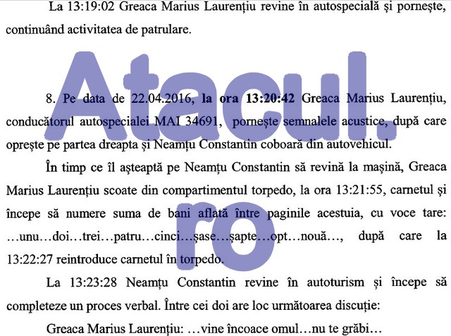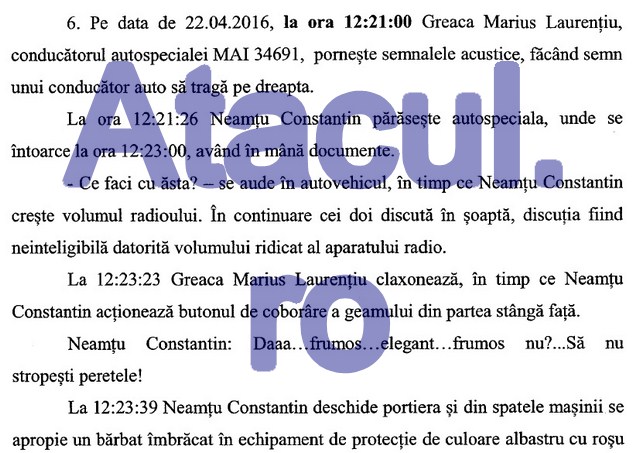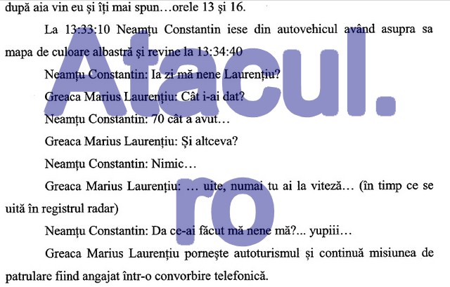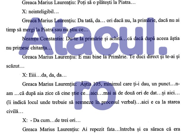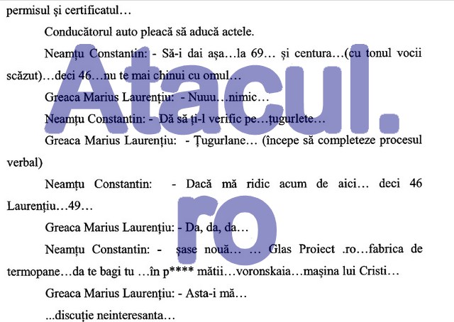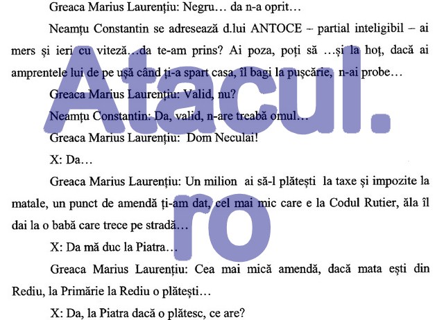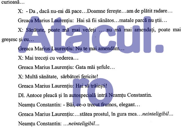 Mai jos sunt interceptările realizate în acea zi, când Greaca și Neamțu au plecat acasă, fiecare, cu câteva sute de lei. Din șpăgi.