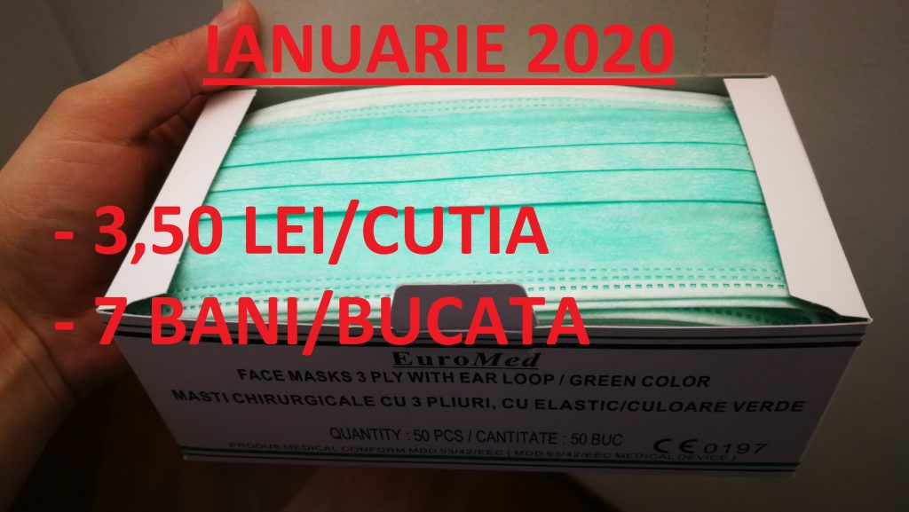 Cutia din imagine conține 50 de măști, iar în ianuarie costa 3,50 lei.