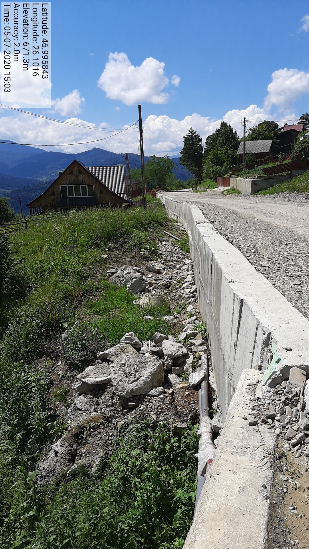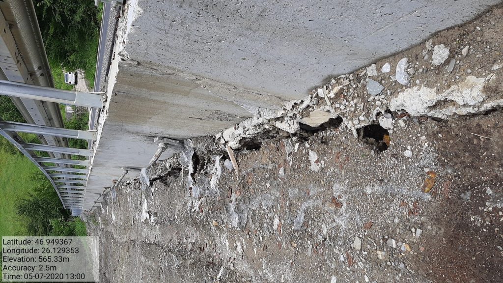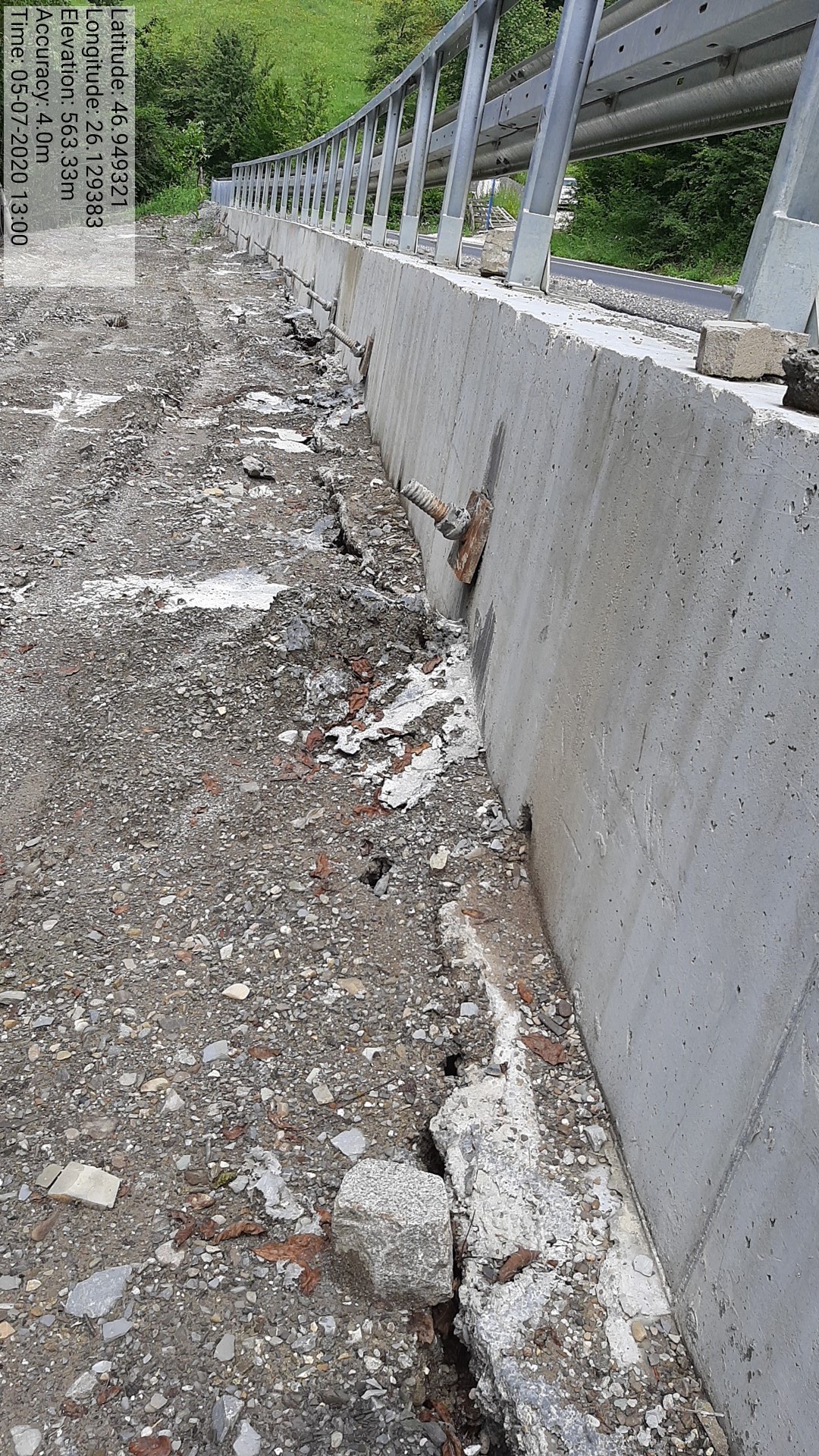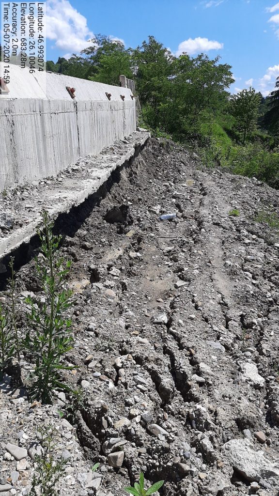 Probleme au început deja să apară în câteva zone în care au fost construite ziduri de sprijin și unde pământul depozitat în aval de drum a început să o ia ușor la vale. Că este vorba de chestiuni grave sau mai puțin grave numai specialiștii pot stabili. Cert este că în cel puțin trei locuri, identificate de noi, terenul a început să se surpe.