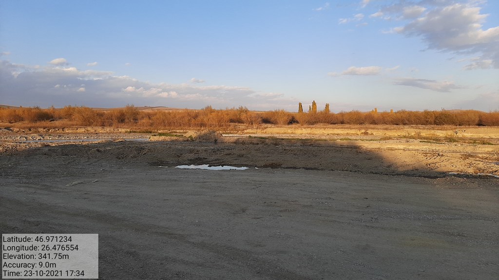 2. Plimbarea excavatorului cu senile pe toata sectiunea si lungimea cursului de apa( a se vedea clar si perfect toate urmele excavatorului cu senile care a ” masacrat ” cursul de apa);