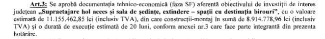 „În această extindere se va amplasa biroul președintelui Consiliului Județean, secretariatul și spațiile anexă, holuri, grupuri sanitare, iar accesul se va realiza cu scară exterioară dimensionată corespunzător, respectiv cu lift care să deservească delegațiile oficiale, respectiv vizitatorii, inclusiv persoane cu dizabilități”, se mai arată în referat.