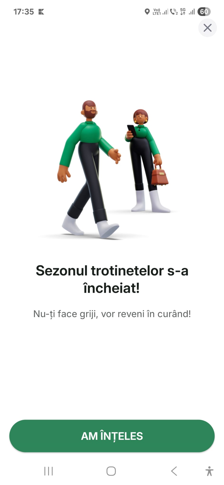 Foto: Mesajul afișat de aplicația Bolt celor care vor să închirieze o trotinetă în Piatra-Neamț