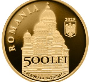 Trei monede, din aur, argint și tombac cuprat, cu tema „Centenarul Patriarhiei Române”, lansate în ...