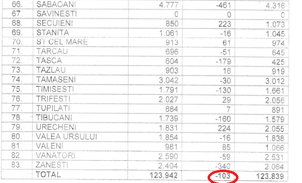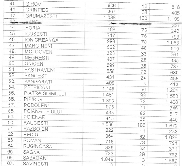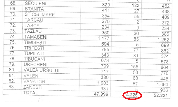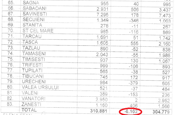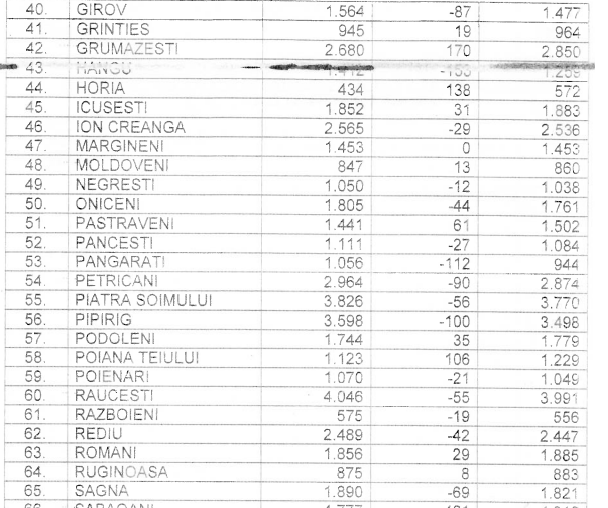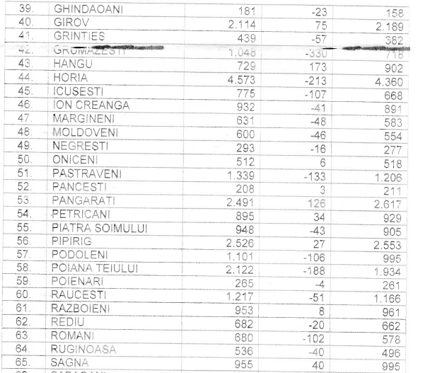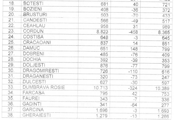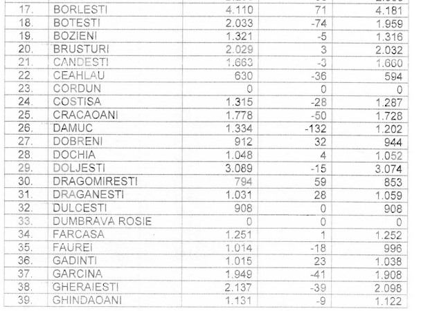 În mediul urban, Primăria Târgu-Neamț figurează cu un minus de 901.000 de lei, Primăria Roman, cu -754.000 de lei, Primăria Piatra-Neamț, cu – 217.000 de lei, Primăria Bicaz, cu – 373.000 de lei, iar Primăria Roznov, cu -422.000 de lei.