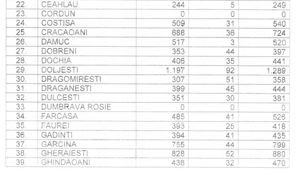 - 15% la bugetul local al județului în sumă de -1.358 mii lei;