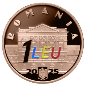 Aversul monedei prezintă frontonul Universității „Babeș-Bolyai” din Cluj-Napoca, inscripția „ROMÂNIA” în arc de cerc, valoarea nominală „1 LEU”, stema României și anul de emisiune „2025”.