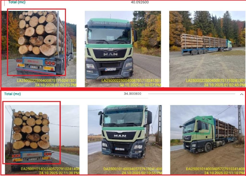 Lucrurile sunt puțin mai complicate, în sensul că același camion, cu fix aceeași încărcătură, apărea în Sumal cu o cantitate de 40,0926 mc rășinoase – lemn de foc, transportat de la Bălțătești la depozitul Pricoforest din Târgu Neamț. Avizul a fost emis în data de 24 ocombrie, la ora 13.01.