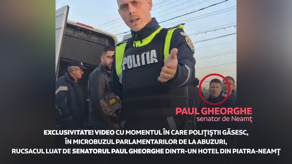 Exclusivitate! Video cu momentul în care polițiștii găsesc, în microbuzul parlamentarilor de la Abuzuri, rucsacul luat de senatorul Paul Gheorghe dintr-un hotel din Piatra-Neamț