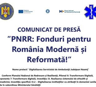 COMUNICAT DE PRESĂ ”PNRR: Fonduri pentru România Modernă și Reformată!”