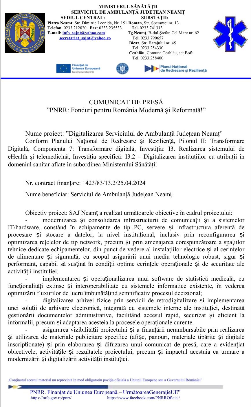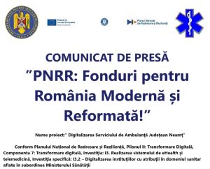 COMUNICAT DE PRESĂ ”PNRR: Fonduri pentru România Modernă și Reformată!”