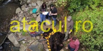 GALERIE FOTO. Urs împușcat și tranșat de braconieri, la Tarcău