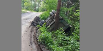 Un camion plin cu nisip s-a răsturnat într-o râpă la Secu-Bicaz. Șoferul a scăpat ca ...