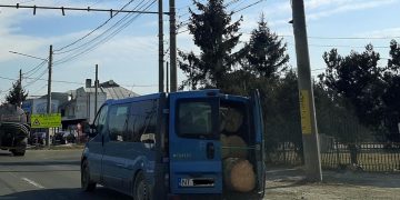 Bușteni îndesați într-un microbuz de persoane, sub ochii polițiștilor