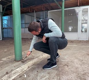 Primarul Niță, la demolarea pieței, ciocănind un stâlp metalic din structura imobilului. A ruginit, n-a ruginit…